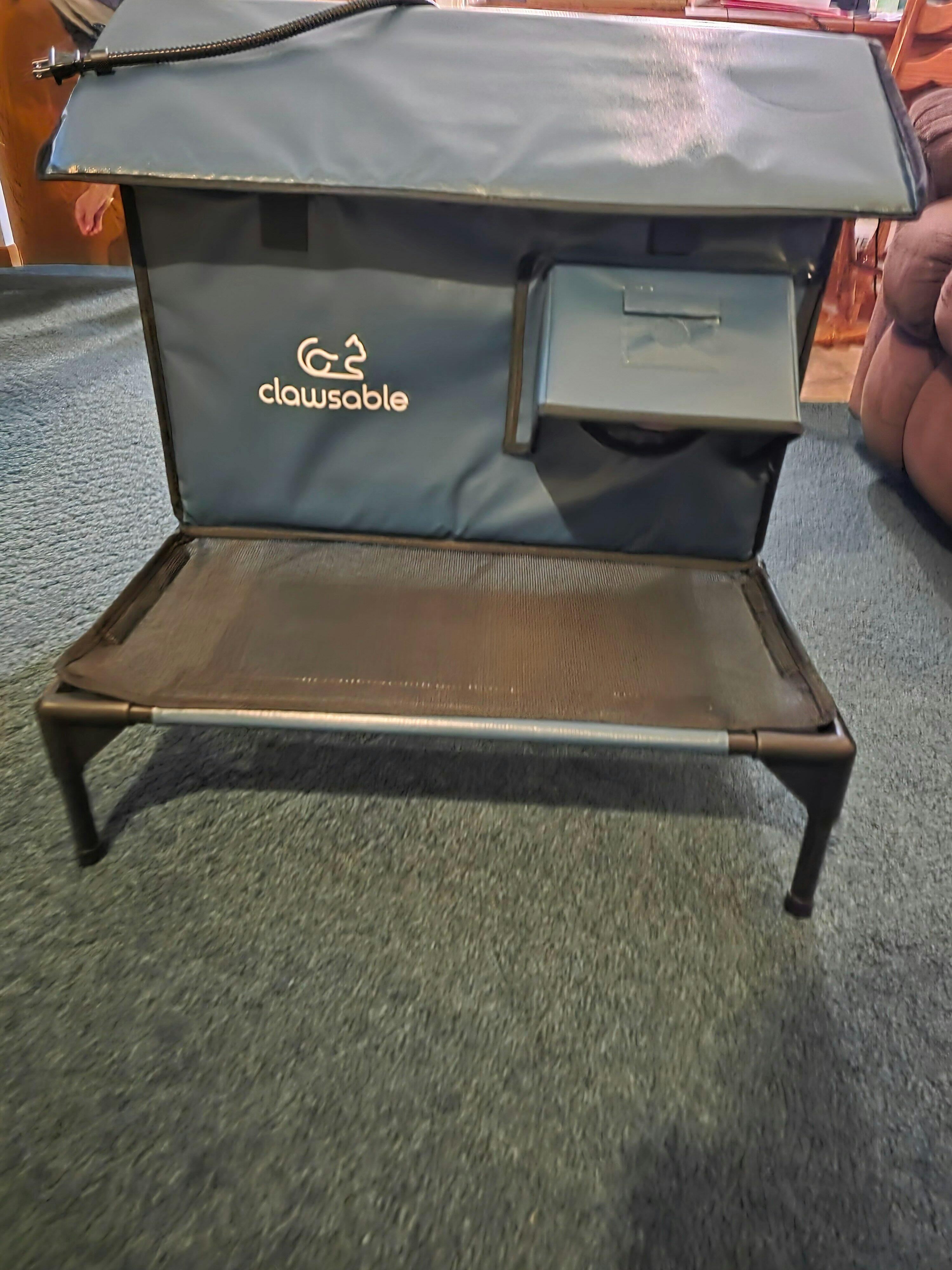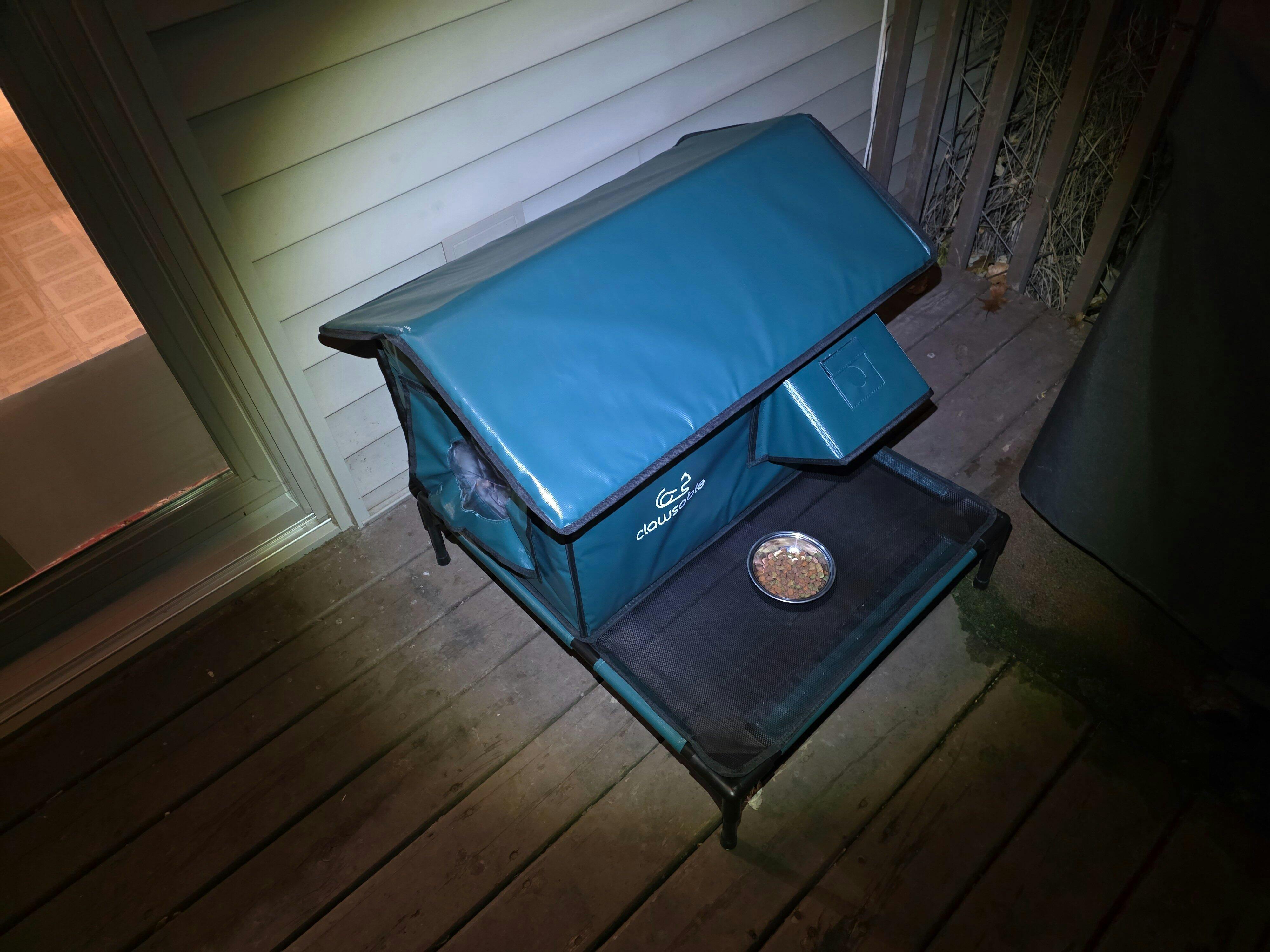 The Clawsable outdoor heated cat house, built for harsh winters. This insulated, weatherproof shelter features a heated pad that protects cats from frostbite, keeping them warm and cozy in temperatures as low as -22°F, even during a blizzard.